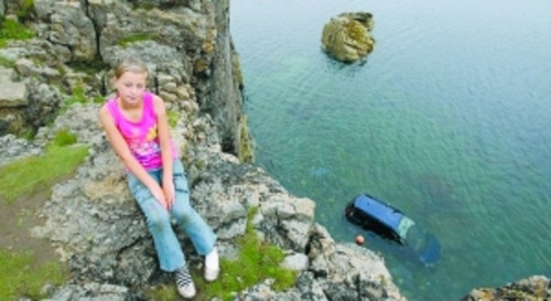 大難不死的佩吉和墜落懸崖的汽車