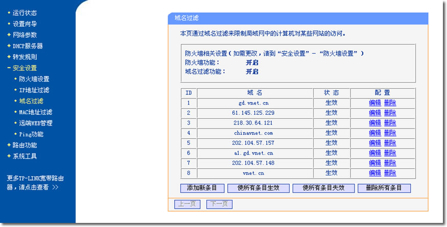 里面包含有兩個(gè)域名:pub.gznet.com 、www.gznet.com,我們就把這兩個(gè)域名加到路由的“安全設(shè)置”的“域名過(guò)濾”里即可。