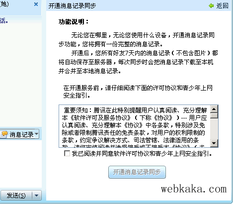 2、點(diǎn)擊“開通消息記錄同步”的連接