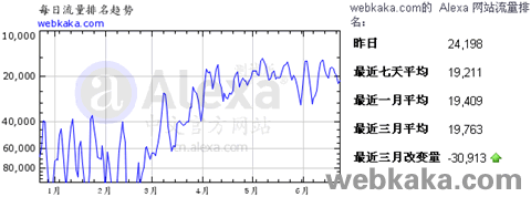 最近幾個月,本站的alexa排名一直徘徊在2萬名上下,當日排名一般不會跌出3萬,但絕對不會進入1萬內,我看到最高當日排名記錄是1.2萬。