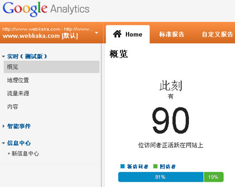 現在主流的網站流量統計都有網站在線人數的統計,不過,google分析比其他統計例如百度統計、 cnzz統計、51la統計的驕人之處是,google分析自動刷新更新在線人數數字,不需要我們手動刷新網頁。這一點,目前國內沒有哪家的統計網站做到。