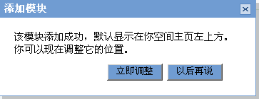 2、找到友情鏈接模塊后,如上圖,點擊右邊的“添加到我的空間”圖片按鈕。這時會提示是否需要調整模塊位置,默認是顯示在你的空間主頁左上方。