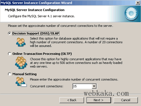 12、配置MySQL的同時連接數,選擇默認的第一個選項即可