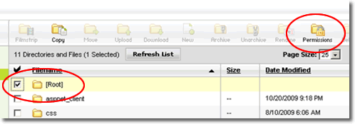 2、進入網站內容管理界面后,選中“[Root]”,然后點擊“Permissions”,如下圖