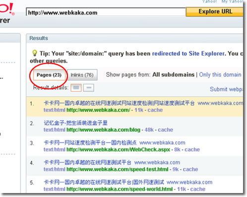 yahoo.cn與yahoo.com使用的是兩個不同的搜索平臺,編錄索引數據絕然不同。看看本站在yahoo.cn和yahoo.com的site結果吧。