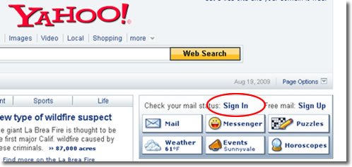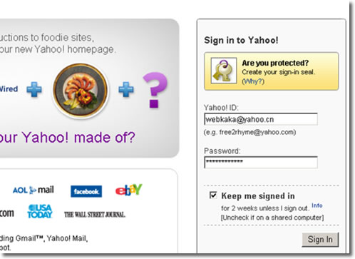 3、輸入Yahoo!ID和Password,然后點擊“Sing In”,登錄后,頁面自動轉到Yahoo.com主頁面,