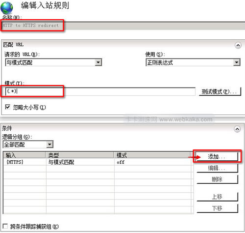 6、條件輸入:{HTTPS} 模式:off 或 ^OFF$。