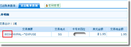 9、這時,你需要等2-3天,然后你的信用卡里出現一條交易記錄: