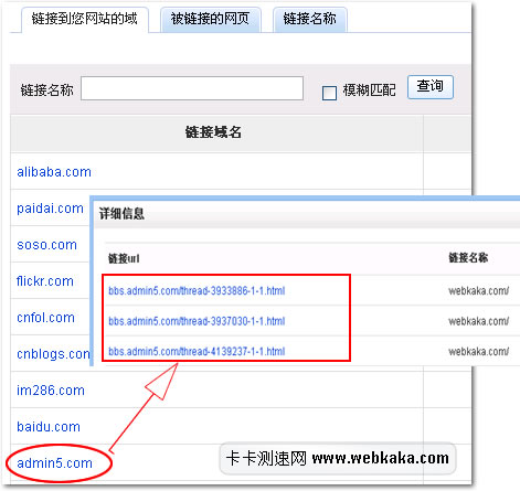 點擊域名會看到有哪些頁面鏈接到網(wǎng)站。