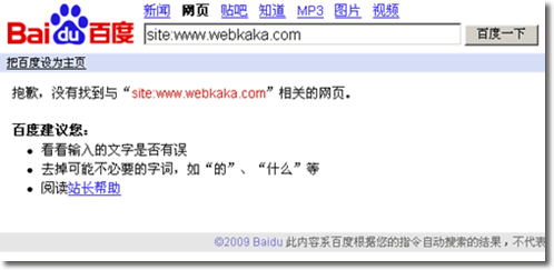 我從站長統計里看到有webkaka.com連接的百度來源,意識到可能還有webkaka.com的記錄,于是,site一下webkaka.com,即把www去掉來site,結果真的有記錄,不過只有3條了。