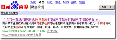 我試試搜“網速檢測”這個關鍵詞,看還有沒有www.cuckooft.com的記錄,因為這個關鍵詞,www.cuckooft.com一直都是排在第一位。結果,令人感到意外,www.cuckooft.com竟然還排在第一位,但快照不是最新的了。