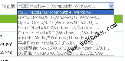 瀏覽器:<select id="UserAgent" style="width: 320px;"/>