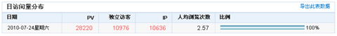 經驗告訴我,7500將是這次流量提升的最高峰,在日后的1、2個月里,網站流量也許就在7000IP上下波動了。而10000IP的流量,至少還要經過兩次的提升階段,需要半年的時間才能看到。所以,當我看到昨天的IP沖過了10000的時候,真的非常驚訝,因為我沒想到來得這么快。