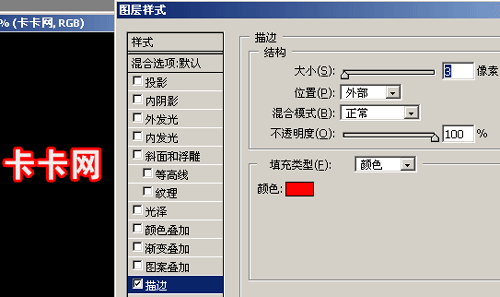 “卡卡網”三個字就是描了邊的,看起來比不描邊好看多了吧。簡單的制作方法如下: