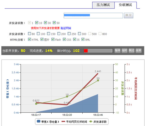 壓力測試持續時間可以是1分鐘、2分鐘、3分鐘、5分鐘、10分鐘,持續時間越長,越能體現網站在一定壓力下運行的穩定性能。