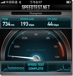 而如果聯通禁用 3G 服務,錄得的下載速率為 190 kbps,和移動 Edge 的數據基本相當。3G 的網絡速度還是相當快的。實際的瀏覽,其直觀感覺的差異亦非常明顯。