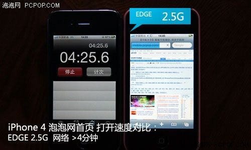 2.5G EDGE網絡環境下,iPhone 4打開手機頻道首頁平均時間超過四分鐘,其中還有多次無法打開的情況。
