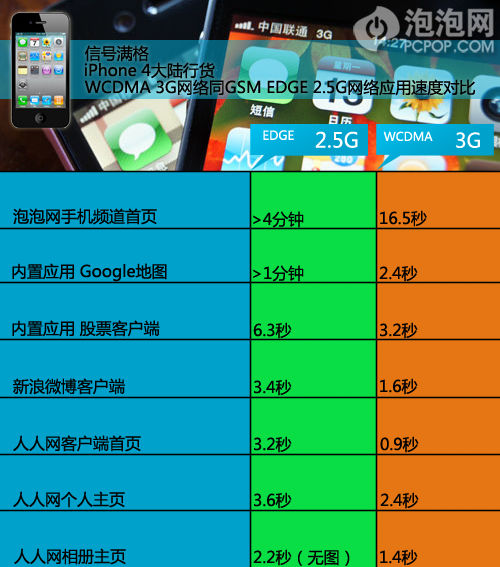 WCDMA 3G網絡環境下,iPhone 4打開手機頻道手機平均時間為16.5秒。