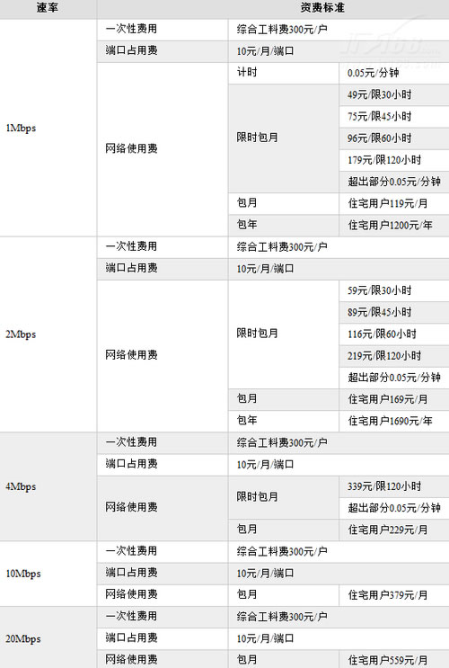 北京ADSL電信寬帶包年資費解析: