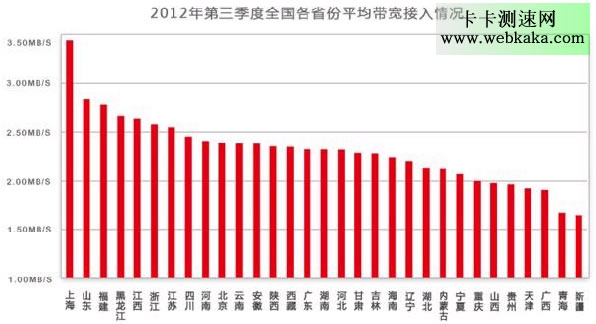 藍汛近日公布了2012年第三季度全國網速排名統計數據,數據顯示,7月到9月全國平均網速約為2.31Mb/s。
