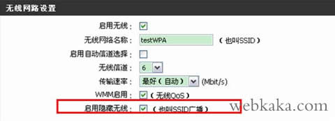 趁熱打鐵,修改完SSID后,將下方的“啟用隱藏?zé)o線”勾選上。這樣的話,一般我們使用Windows自帶無線管理程序再搜索無線網(wǎng)絡(luò)時就不會搜到您的無線網(wǎng)絡(luò)了。