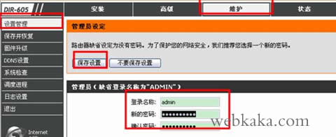 在上面第三步我們也看到了,配置界面的無線網(wǎng)絡(luò)密鑰填寫后并不是呈現(xiàn)原點(diǎn)或者*狀字符,因此如果其他人連接到您的局域網(wǎng)內(nèi)就可以登錄到您的路由器里面查看配置信息,包括無線密鑰,除了共享您的網(wǎng)絡(luò)資源外,還很有可能使得您的ADSL賬號密碼等泄露出去。為了避免這一情況的發(fā)生,我們再給您的路由器管理權(quán)限增加一個密碼。路由器一般默認(rèn)情況下密碼為空,或者為admin等,那么您可以在“維護(hù)”?“設(shè)置管理”中,填寫“新的密碼”,并再進(jìn)行“確認(rèn)密碼”的填寫,最后點(diǎn)擊“保存設(shè)置”使其生效就可以了。