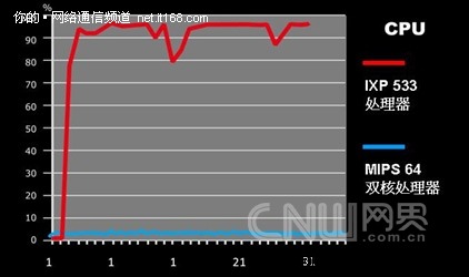 圖三:GQF630的MIPS雙核CPU與Intel IXP CPU使用率對比圖