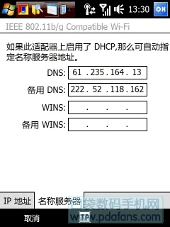 同樣以多普達WiFi手機為例,按手機左上側的快捷鍵或進入“開始→設置→連接”,便可打開“通訊管理”設置界面。選“設置→WiFi設置”,打開“WiFi”選項。