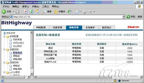 本例中我們新建了一個名為“p2p限制”的通道,并設置通道的帶寬為10M,如圖所示。