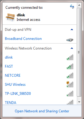 1、由快速鏈接處進入網絡共享中心(Open Network and Sharing Center)