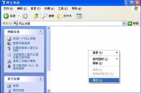 先打開網上鄰居,在空白處右鍵屬性