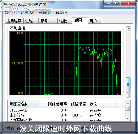 ▲關閉QoS時外網下載曲線