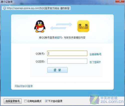 用戶可以用其他賬號關聯到搜狗瀏覽器
