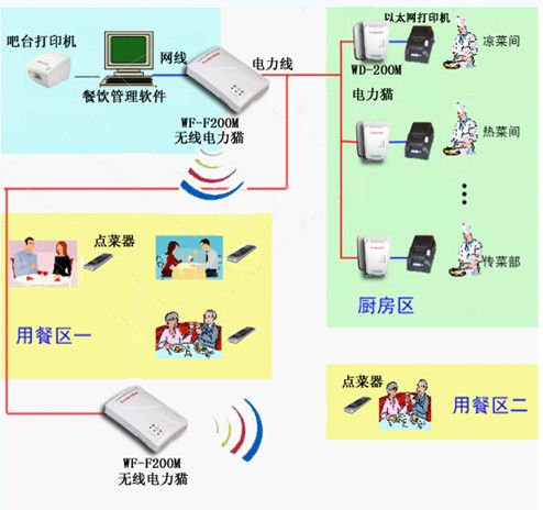 LechenTek WD-F200M在點菜系統中的應用拓撲圖