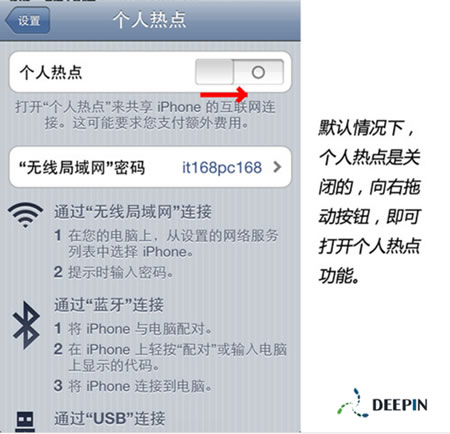 二、個人熱點默認是關閉的,現在啟用它,