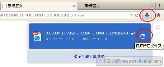 點(diǎn)擊上圖中圈出的那個(gè)圖標(biāo),就可以打開視頻文件保存的文件夾了,在里面可以找到你剛才下載的視頻文件。