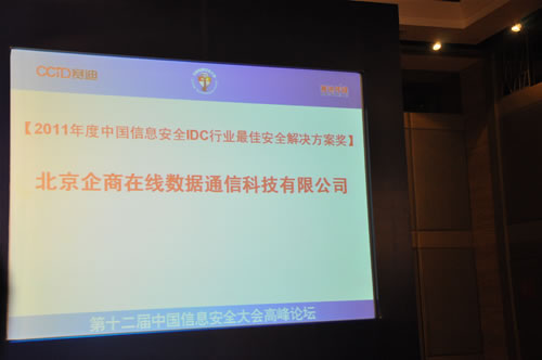 本次獲得“2011年中國信息安全IDC行業(yè)最佳安全解決方案獎”,是對企商在線多年以來一直對客戶托管信息安全、完善服務(wù)水平的肯定,作為專業(yè)性的IDC服務(wù)企業(yè),以后將在客戶信息安全服務(wù)之路上,全力護航!