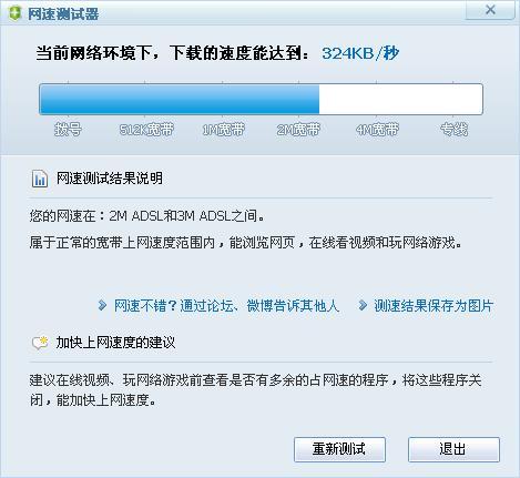 通過網速測試,還可以以防有的不負責任的ISP,對你采用一些不道德的行為,例如將你的帶寬減少1半。