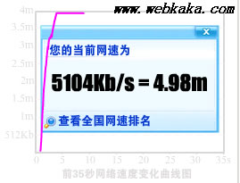 卡卡網的測試結果是:下載速度為5104kb/s,約為4.98m。(小知識:網速單位換算方法)