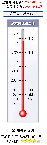 欣欣旅游網的測試結果是:下載速度為2128.48kb/s,約為2.08m。