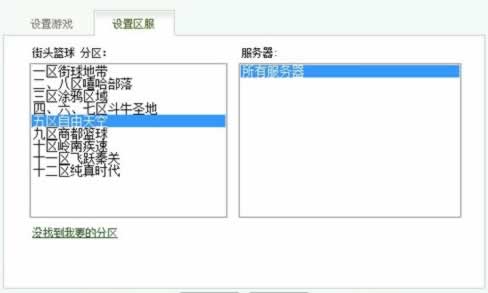 點右主界面右上角的“設置游戲/區服”按鈕,可以看到迅游2010能夠支持加速的網游十分全面。從上面找到《街頭藍球》,并且點選它,會接著跳出來一個選擇區服的界面。