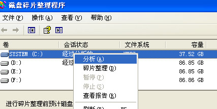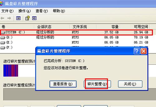 接下來是磁盤碎片整理