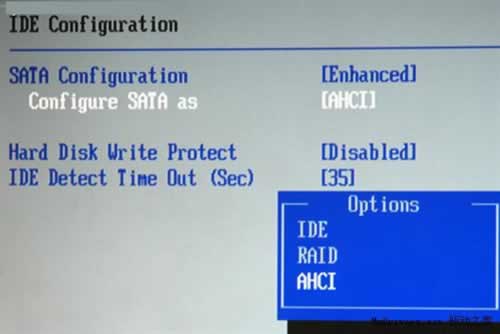 如果你的主板支持AHCI,那么請在安裝Windows 7前進入Bios設置,在Advanced選項中將SATA controller Mode中默認的IDE調整為AHCI。