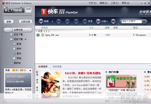 快車(chē)3的廣告比迅雷更加猖狂,有主界面上部橫幅廣告、新建任務(wù)對(duì)話框橫幅廣告和屏幕右下角彈出窗口廣告。手動(dòng)去除這些廣告最重要的一步就是要找到FlashGet 的dat\stat\advertisement 文件夾。我的Windows7系統(tǒng)是在C:\Users\Administrator\AppData\Roaming\FlashGet\v3\dat\stat 里面。