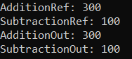 MathOut(200, 100, out AdditionOut, out SubtractionOut);