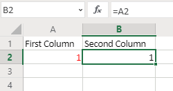 請(qǐng)注意,單元格 A2 只是數(shù)字“1”。然后在 B2 列中,我們引用了單元格 A2。這是因?yàn)槲覀円獧z查庫(kù)是否允許我們不僅從單元格中獲取“公式”,而且還允許我們計(jì)算出的值應(yīng)該是什么。