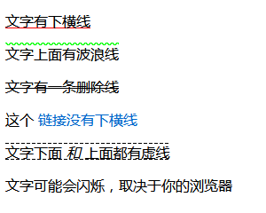 本文演示介紹在文字下面加波浪線,在文字上面加直線等各種text-decoration屬性。