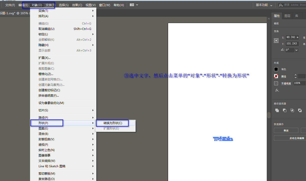 為你的文字“創建輪廓”。鼠標右鍵點擊你的文字,然后在菜單里點擊“創建輪廓”。