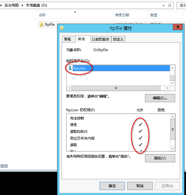 右鍵點擊該文件夾,點擊“屬性”—“安全”,添加剛創建的FTP用戶。