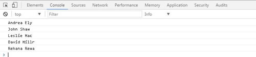 這個輸出顯示了對象數組里的FirstName和LastName。